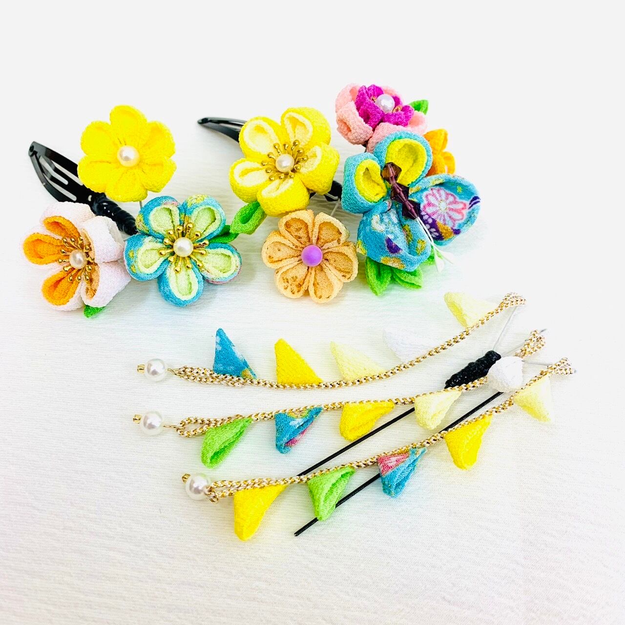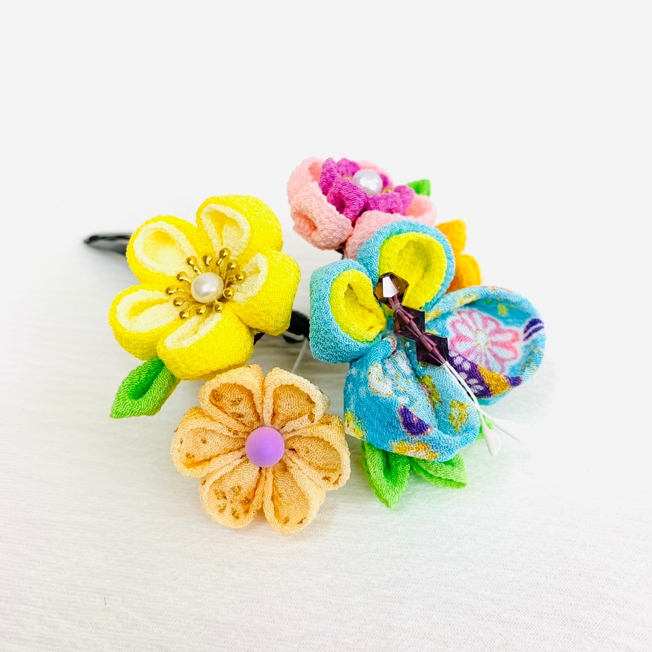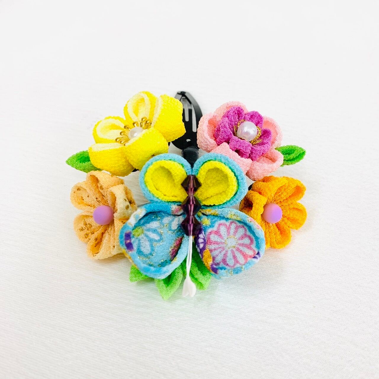 つまみ細工 七五三飾り3点セット(ブルーの蝶々)