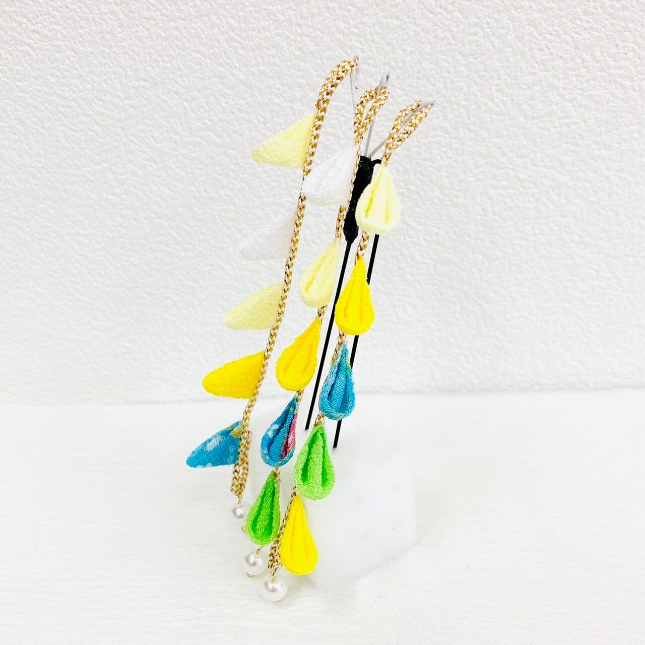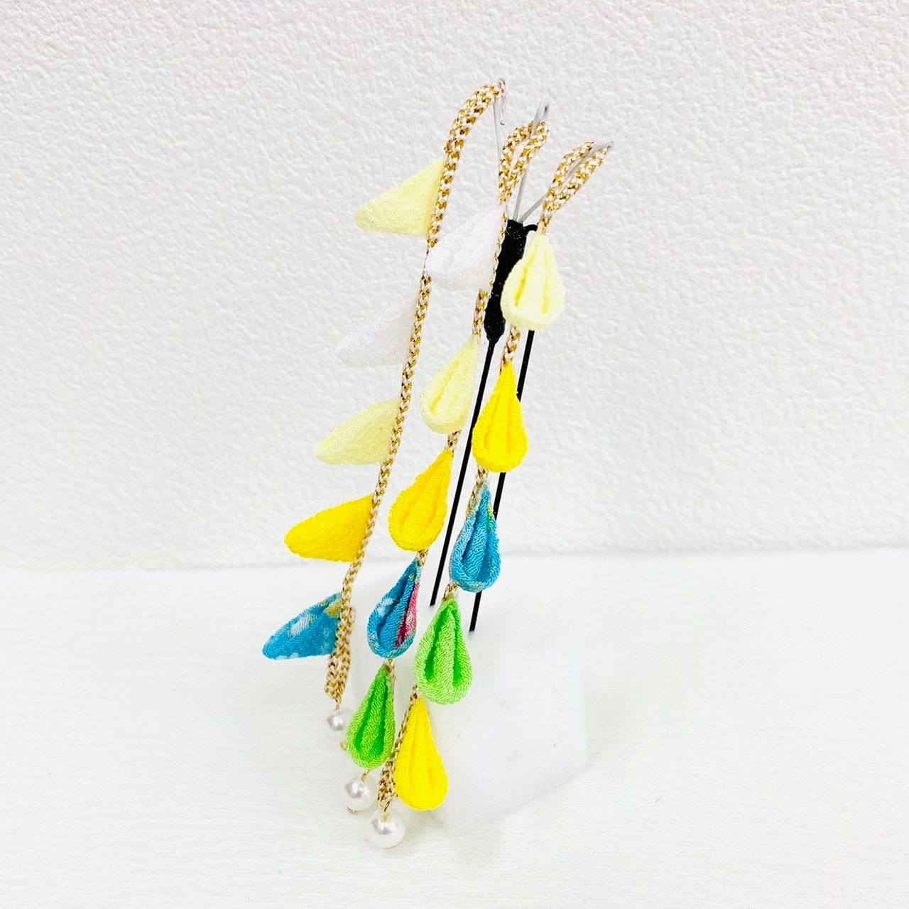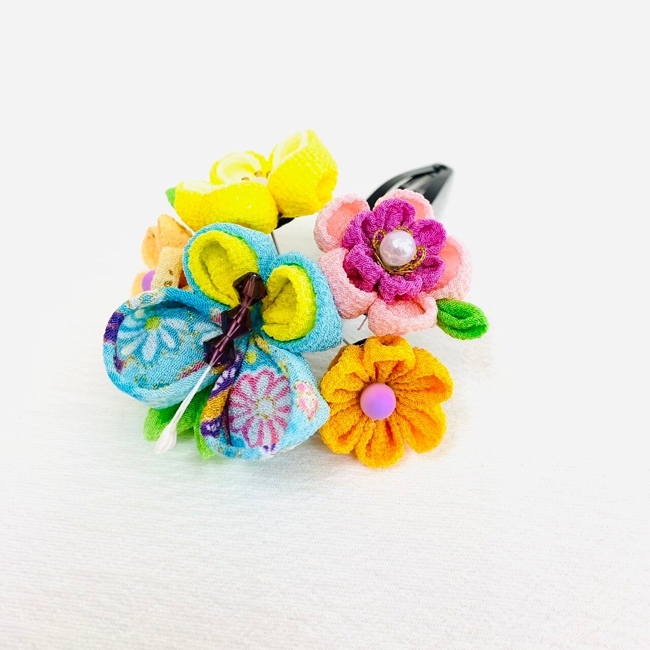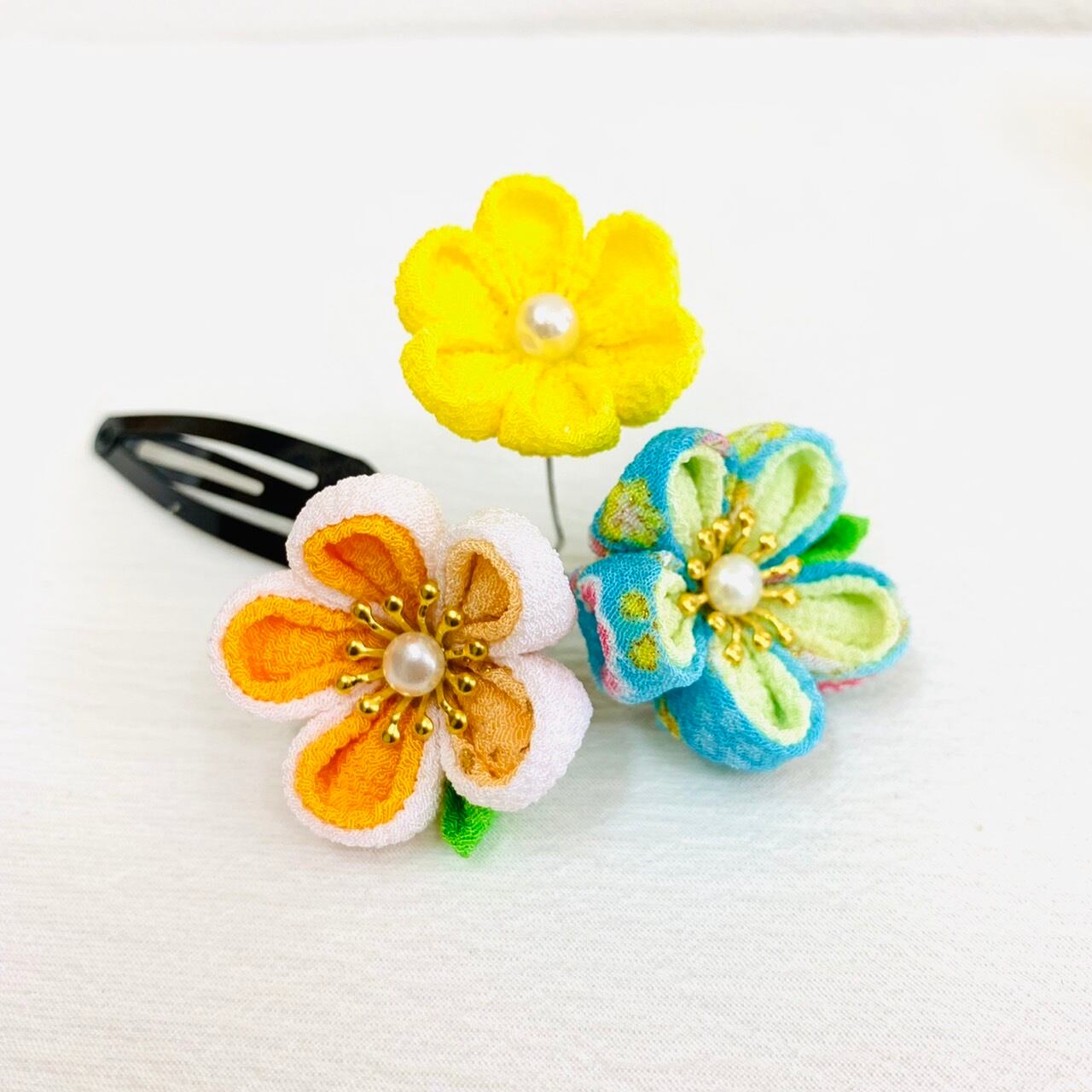 つまみ細工 七五三飾り3点セット(ブルーの蝶々)