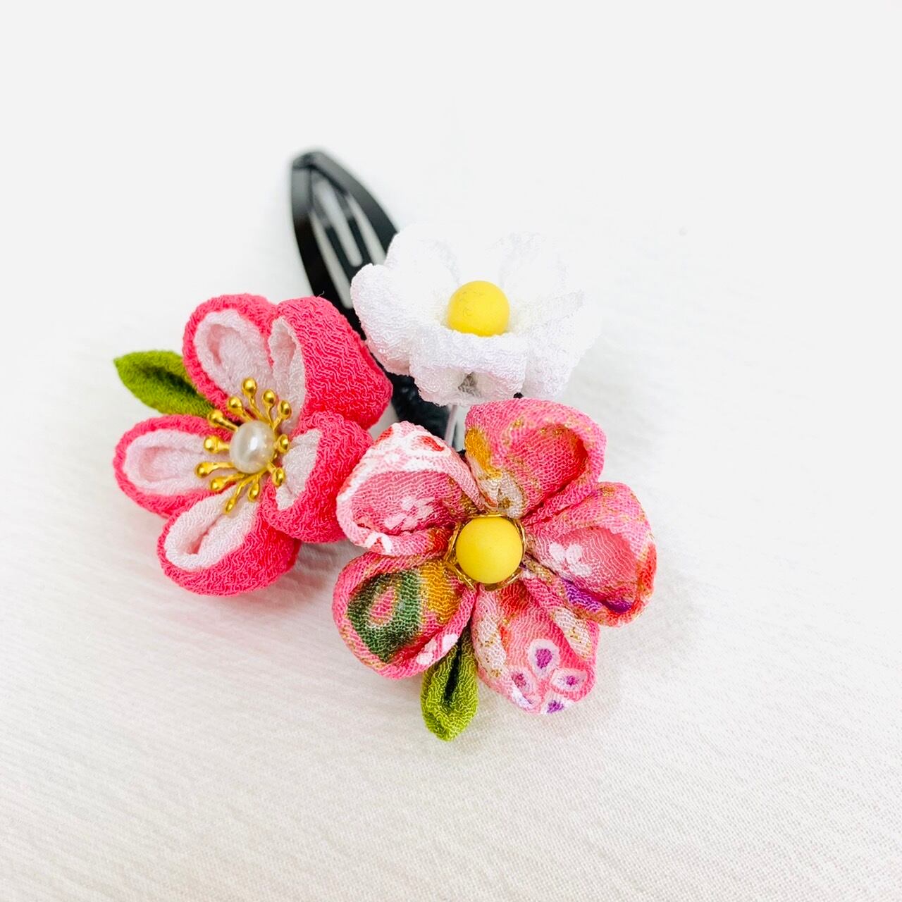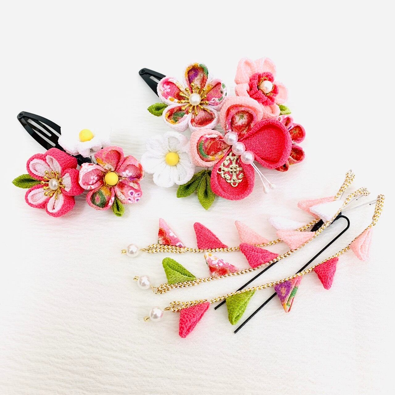 つまみ細工 七五三飾り3点セット(ピンクの蝶々)