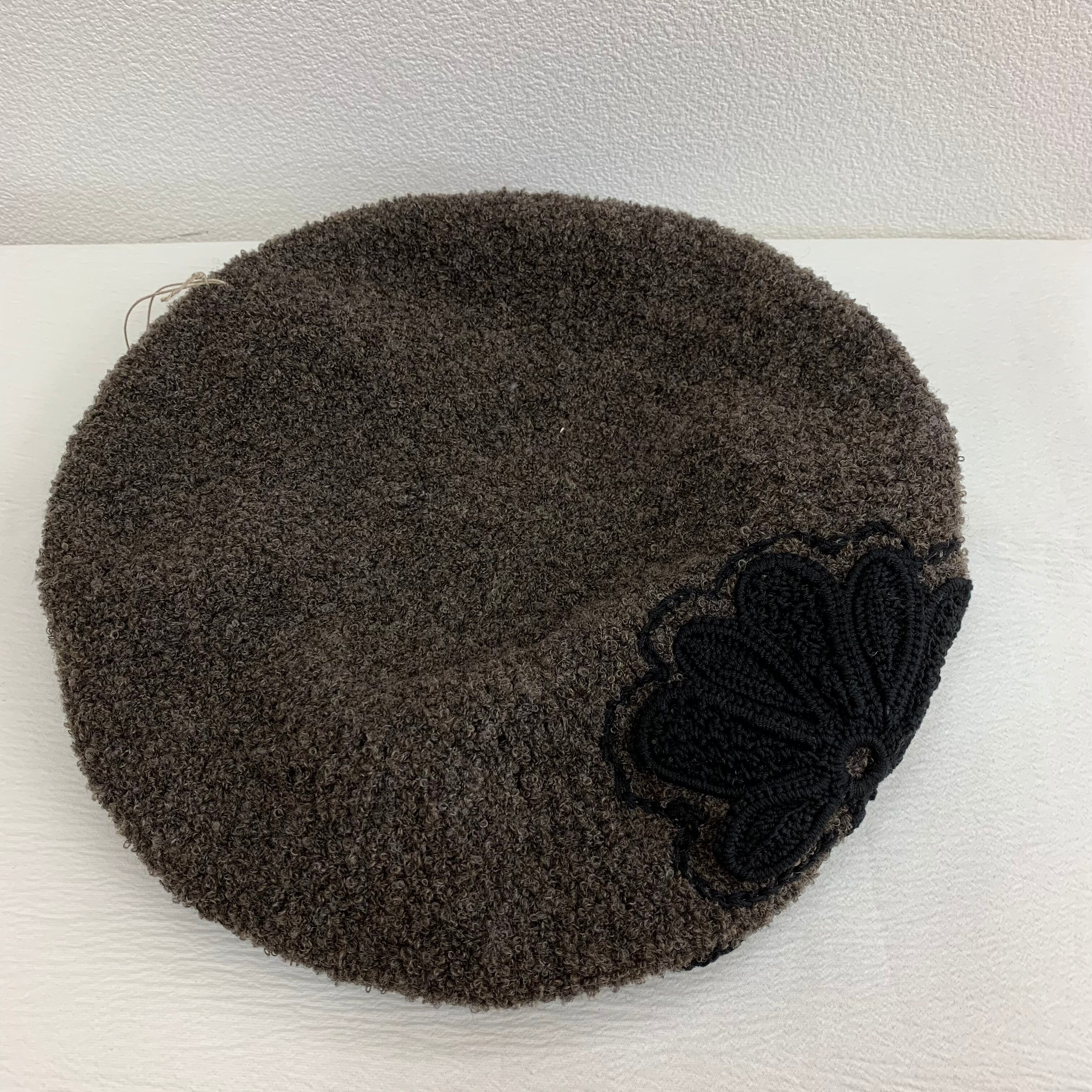 温かくて軽いベレー帽です。黒のアップリケでワンランク上のお帽子です。