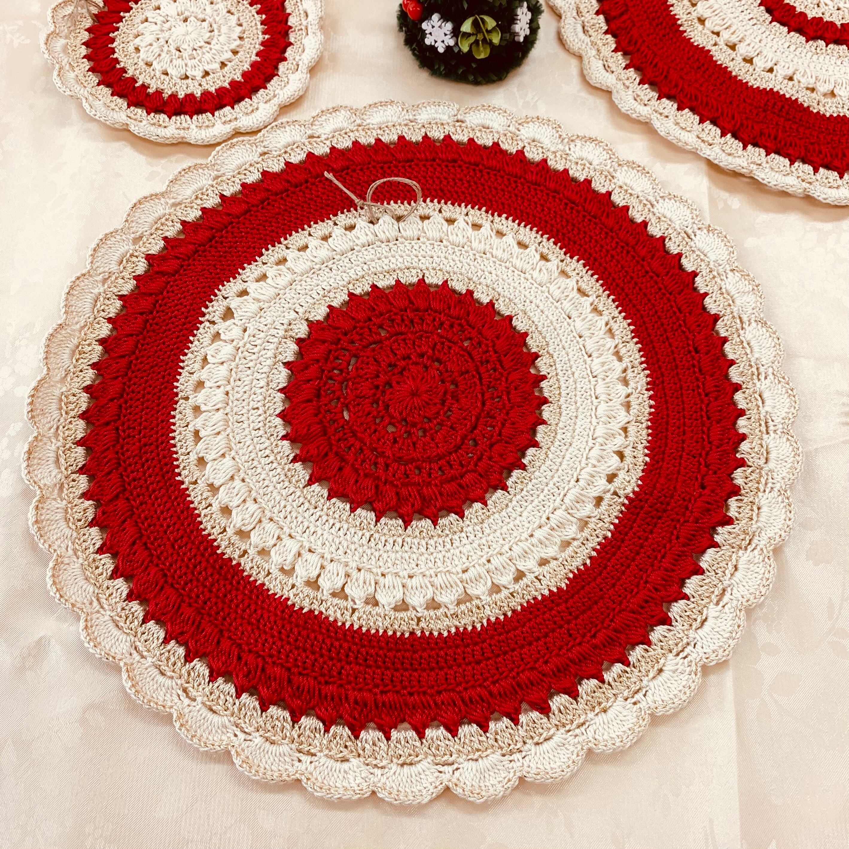 金ラメ糸を混ぜ華やかで上品なドイリーです。