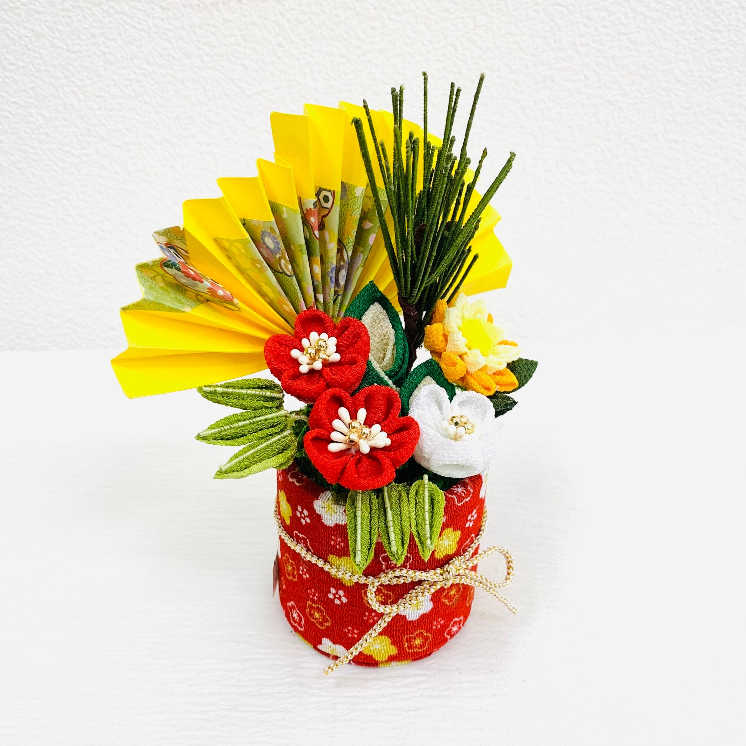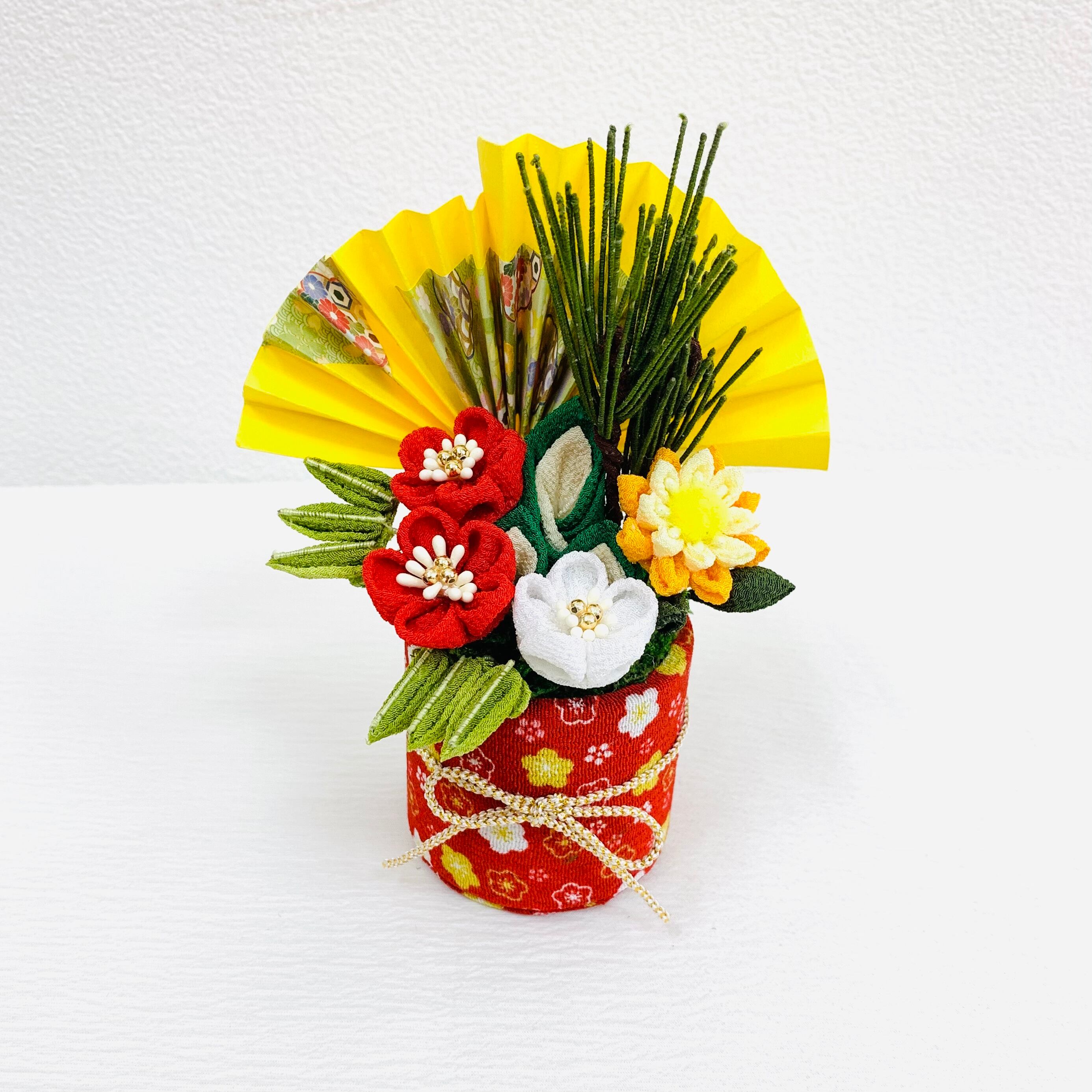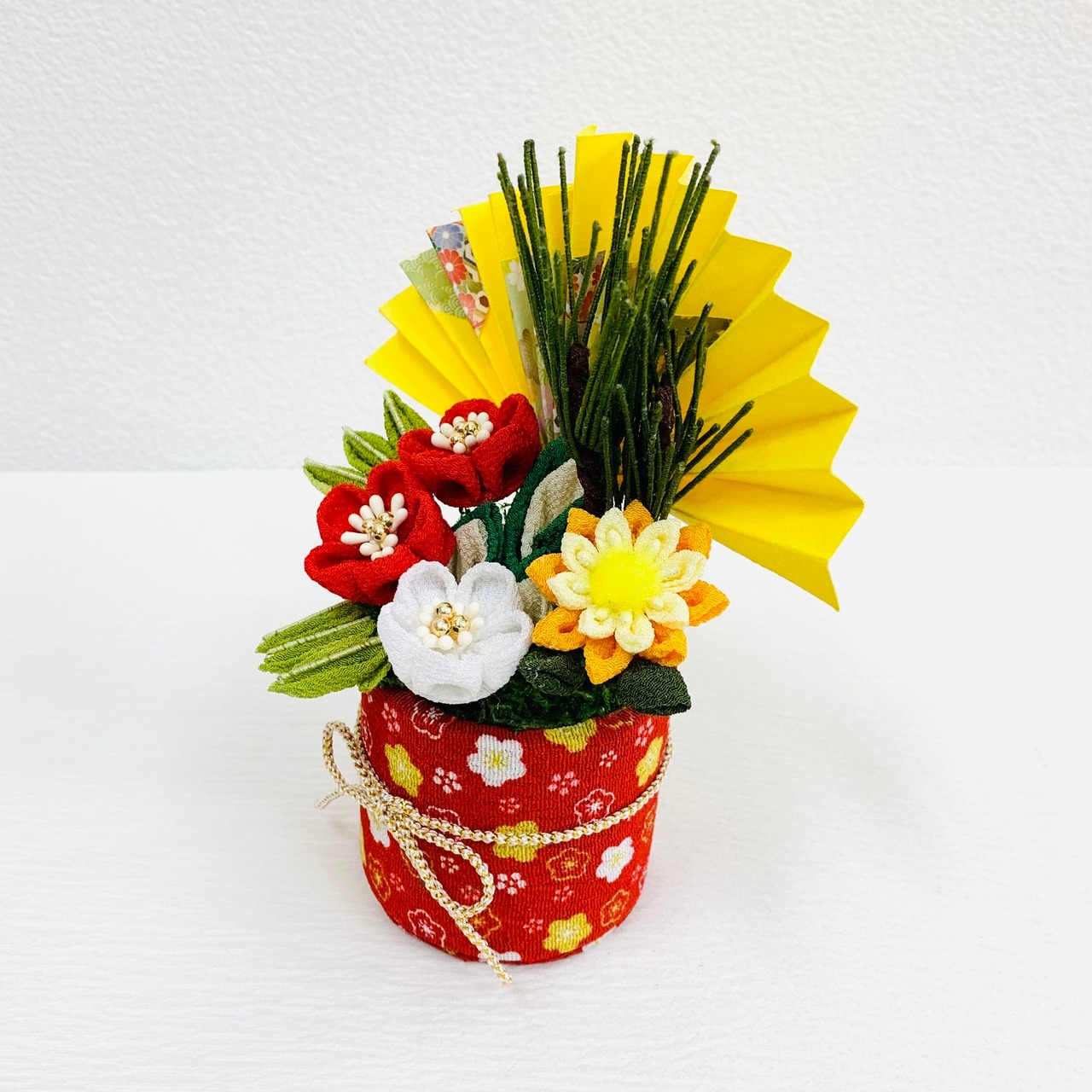 松葉はワイヤーに一本一本糸を巻いてあります。足元にはグリーンモスをあしらってあります。